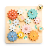 Pre hru nechajte deti umiestniť ozubené kolieska na drevenú dosku, aby sa do seba zapadli a všetko sa točilo ako na kolotoči. Rozmery balenia sú 27,5 x 27,5 x 7,5 cm.
