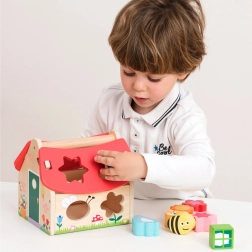 Tento domček na triedenie tvarov je ideálnou hračkou pre deti od 12 mesiacov. Domček obsahuje osem rôznych tvarov, ktoré sa deti učia rozpoznávať a vkladať do správnych otvorov. Po dokončení úlohy môžu deti otvorením strechy tvary ľahko získať späť.