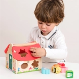 Pomocou vkládania tvarov do domčeka sa deti učia precíznosti pohybov a zlepšujú svoju koordináciu rúk.