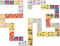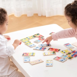 Drevené domino je zábavná a vzdelávacia hra, ktorá ponúka nekonečné možnosti rozvoja učenia pre malé deti. Obsahuje 28 obojstranných kameňov s ilustráciami dopravných prostriedkov na jednej strane a bodkami na druhej. Je to vynikajúci spôsob, ako deti môžu zábavne zlepšiť svoje zručnosti v riešení problémov a logické myslenie.