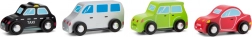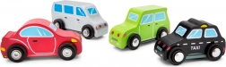 Táto súprava ponúka štyri drevené autíčka, ktoré majú jednoduchý a farebný vzhľad, upútajúci pozornosť malých detí. Autíčka sú ľahké a ľahko uchopiteľné, čo ich robí ideálnymi pre rozvíjanie jemnej motoriky. Deti ich môžu používať pre kreativitu a nápaditú hru, čo zároveň pomáha rozvíjať ich schopnosti vyjadrovania.