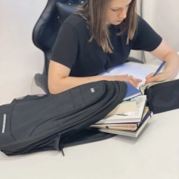 Hlavná komora s obojsmerným zipsom pojme knihy, oblečenie aj vybavenie; vo vnútri je polstrované vrecko na notebook/tablet. Druhá komora je vhodná pre ploché a rozmernejšie materiály (zošity, bloky). Predné vrecko na drobnosti a dve bočné sieťované vrecká perfektne doplnia každodennú organizáciu.