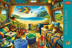 Téma „Cestovanie karavanom“ z kolekcie Tea Time poteší bohatými detailmi – od gitary cez lampáš až po roztomilého psa v karavane s výhľadom na pláž. Puzzle je ideálne na relax, tréning sústredenia a spoločné chvíle s rodinou či priateľmi.