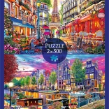 Objavte dve úchvatné skladačky v jednom balení – puzzle 2×500 dielikov s motívmi Paríža a Amsterdamu z netradičnej perspektívy. Každý obrázok má rozmer 48 × 34 cm a je vyrobený z kvalitných materiálov v Poľsku. Špeciálny kalandrovaný papier znižuje odlesky a spríjemňuje skladanie.