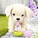 Pri napájaní z mištičky psík skloní hlavičku, vyplazí jazyk a je počuť, ako srká. Po napití zdvihne nožičku a vyciká sa – realistická funkcia, ktorá deti nadchne a podporí ich fantáziu pri hre na starostlivosť o zvieratko. Kostička spustí zvuky chrumkania, hladkanie po chrbte zas vrtienie chvostíkom a veselé štekotanie.