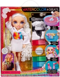 Rainbow High Bábika s Vodovými Farbami vám umožní pretvoriť jej vzhľad podľa vašej fantázie. Sada obsahuje bábiku v bielom outfite a šesť zmývateľných práškov v dúhových farbách: červená, oranžová, žltá, zelená, modrá a fialová. Tieto prášky môžete jednoducho aplikovať a zmienenie farby bábikineho oblečenia i vlasov.