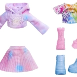 Vložte prášok do vody a ponorte do nej bábikine vlasy alebo oblečenie. Môžete tak jednoducho vytvoriť rôzne vzory a farebné kombinácie. Opláchnite bábiku a zafarbíte ju úplne inak. Neobmedzená kreativita len s Rainbow High bábikou!