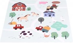 Ilustrácie farmy so zvieratkami, stodolou a cestičkami vtiahnu deti do kreatívnej hry. Jasné farby a detailné motívy podporujú fantáziu aj zmyslové vnímanie.