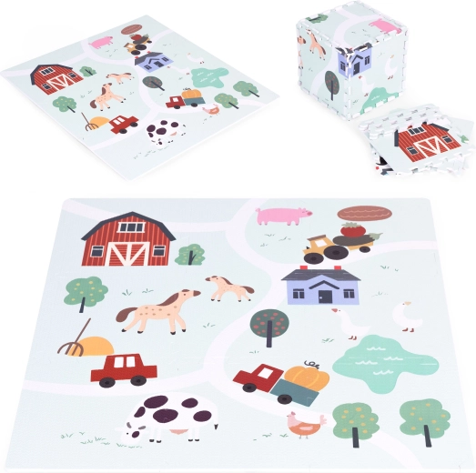 Detská penová podložka s motívom farmy spája bezpečie a zábavu v jednom. Ponúka 21 dielov puzzle, rozmer 90,5 × 90,5 cm a hrúbku 1 cm na pohodlné hranie aj prvé krôčiky. Vyrobená z certifikovanej EVA peny, je protišmyková, ľahko umývateľná a chráni pred chladom podlahy – ideálna na kreatívnu hru a učenie detí od 3 rokov.