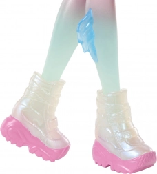 Bábika Lagoona Blue je pripravená vládnuť hlbinám aj módnym trendom. Má dlhé, čiastočne vyčesané vlasy s pastelovými prúžkami, ružový top s motívom rybích kostí a farebné nohavice v štýle Y2K. Vďaka kĺbom je ľahko polohovateľná a vhodná na nápadité scénky a fotenie.
