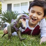 Ovládacie koliesko spustí dynamické pohyby a zvuky: pri posunutí vpred hlava útočí nadol s hryzacím efektom a vrčaním, pri otočení vzad hlava ustupuje s revom a aktivuje sa režim „pripravený na bitku“ s rozšírenými chvostovými ostňami. Skrytý kód umožní prepojenie s aplikáciou Jurassic World, kde si odomknete digitálnu verziu dinosaura a ďalší interaktívny obsah.
