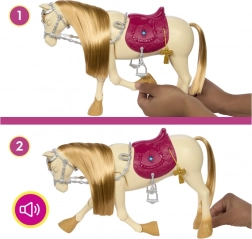 Tento kôň môže vo svojom prejave premeniť začínajúce jazdkyne na starostlivé hrdinky. Dotknite sa jeho hrivy alebo stlačte drahokam na sedle pre aktiváciu pesničiek a zvukov. Vďaka maškrtám, dekoratívnym doplnkom a ďalším prvkom na rozprávanie príbehov je tento koník pripravený pridať mágiu do každého detského dňa.