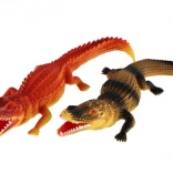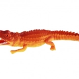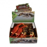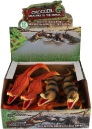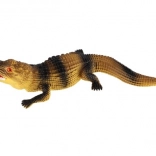 Tento plastový krokodíl má detailné šupiny a otvorenú tlamu, čo z neho robí vernú kópiu skutočného krokodíla.