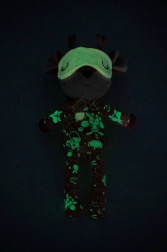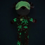 Fluorescenčné potlače na pyžamku a očnej maske po zhasnutí jemne žiaria a dodajú deťom pocit bezpečia pri zaspávaní.