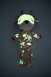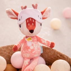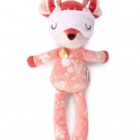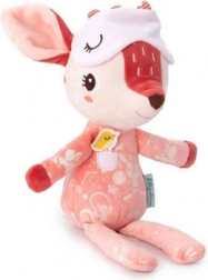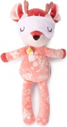 Srnka Stella v tehlovo ružovej farbe nosí roztomilé pyžamko s vreckom a aplikáciou vtáčika, ktorá podporuje hmatové aj vizuálne vnímanie. Očnú masku možno stiahnuť cez oči a po zhasnutí svetla svieti v tme, čo navodzuje pocit bezpečia a pohody pred spaním. Hračka je kvalitne spracovaná, hebká a prívetivá k citlivej detskej pokožke.