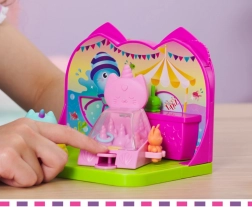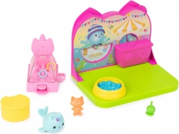 Ponorte sa do pestrofarebného sveta GABBY'S DOLLHOUSE s tematickou izbičkou Narvalkočky. Deti môžu posadiť postavičku do bazénika s loptičkami, skúsiť šťastie v hádzaní krúžkov a otočiť ovládačom, ktorý zmení pozadie scény – vďaka tomu je každé hranie iné a nabité fantáziou. Nechýba ani pult s občerstvením pre ešte autentickejšiu karnevalovú atmosféru.
