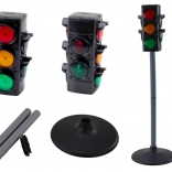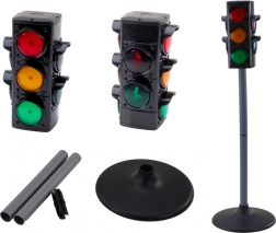 - Svetelná signalizácia: napodobňuje skutočnú signalizáciu (napájanie 3× AAA, nie sú súčasťou)