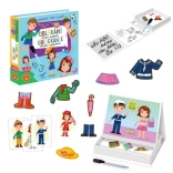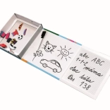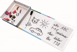 Umožňuje kombinovať písanie, mazanie a skladanie magnetických obrázkov v jednej sade. Táto sada je ideálna na tréning písania písmen a čísel a zároveň poskytuje veľa voľnej plochy na kreslenie stieracou fixkou.
