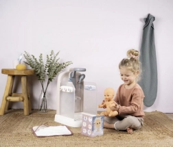 Sprchový kút pre bábiky Baby Nurse ponúka široké možnosti pre imaginatívnu hru. S vodným čerpadlom a nádržou na vodu deti môžu vyskúšať kúzlo reálneho sprchovania. Všetky komponenty sú umiestnené tak, aby zaisťovali jednoduché použitie: