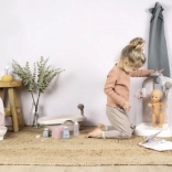 Zahŕňa držiak na uterák a háčiky na župany, čo deťom umožňuje reálnejší zážitok.