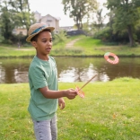 Chyťte Ovocie je vynikajúcou hrou pre rozvoj koordinácie oko-ruka a hrubých motorických zručností u detí. Hra obsahuje 27 farebných ovocných frisbee s priemerom 9 cm a 4 chytacie tyče. Je ideálna pre vonkajšie hry v parku alebo na záhrade.