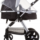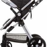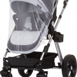 Veľká nastaviteľná strieška so slnečnou clonou, 5-bodové pásy s polstrovaním, priestranný košík, odnímateľné madlo, nánožník, taška, držiak nápojov a moskytiéra – všetko v cene.