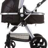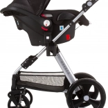 Ľahký rám zo zliatiny sa jednoducho ovláda, odpružené a rýchloupínacie kolesá zvládnu mesto aj horší terén, zadné kolesá majú spoľahlivú článkovú brzdu. Veľká nastaviteľná strieška s odnímateľnou slnečnou clonou, 5-bodové pásy s mäkkým polstrovaním a nová stabilizačná poistka sedačky a vaničky (kolekcia 2024) zvyšujú bezpečie aj komfort.