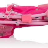 Štýlový detský kočík pre bábiky v ružovom dizajne so srdiečkami poteší každú malú opatrovateľku. Je super ľahký a pohodlný, má nastaviteľnú striešku, priestranný košík na drobnosti a rýchle skladanie do kompaktnej veľkosti pre jednoduché prenášanie a uloženie.