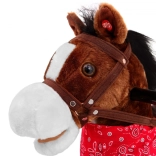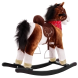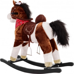 Tento plyšový hojdací koník v tmavohnedom prevedení poteší každého malého kovboja aj kovbojku. Je mäkký, pohodlný a vybavený realistickými detailmi – sedlom so strmeňmi, oťažami a šatkou na krku. Senzory na ušiach aktivujú zvuky erdžania a cvalu alebo veselú kovbojskú pesničku, pričom koník zároveň pohybuje papuľou a chvostom.