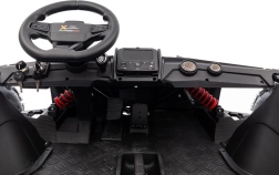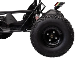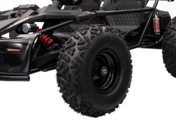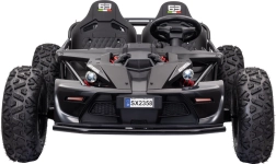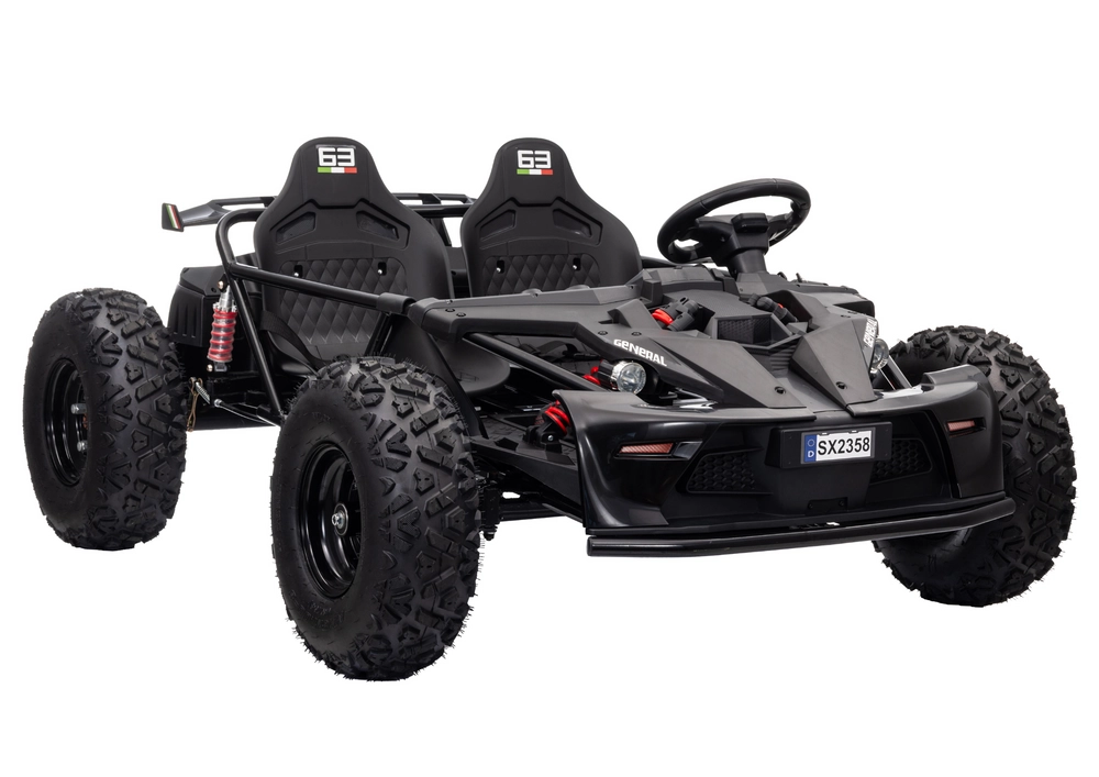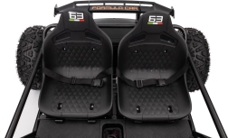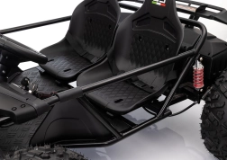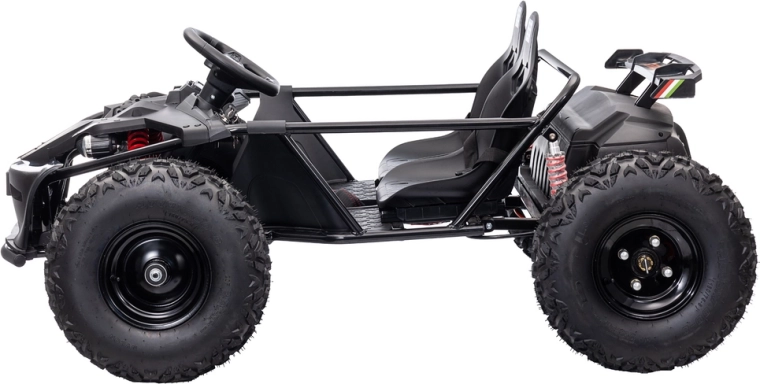 Silný detský off‑road buggy prináša autentický pocit z jazdy: masívny rám, veľké terénne kolesá, viditeľné odpruženie a športové prvky inšpirované pretekárskymi vozmi. Vďaka dvom sedadlám si deti užijú jazdu spoločne, zatiaľ čo robustná konštrukcia zabezpečuje odolnosť aj na nerovnom povrchu.