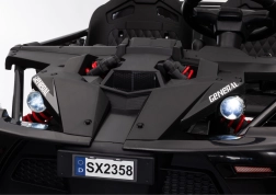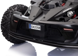 Realistické detaily ako LED svetlomety, ergonomický volant, bezpečnostné pásy a športový spojler podporujú bezpečie aj štýl. Vozidlo je ideálne do záhrady, na poľné cesty aj ľahký terén, kde oceníte istý záber kolies a pevné šasi.