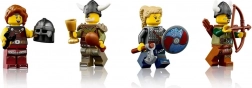 - Štyri minifigúrky – kováč, jarl, štítonoš a lukostrelec, a tiež zbrane a doplnky vrátane niekoľkých štítov, kefy, kladiva, mečov, kopije a kalicha, luku a šípu