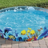 Veselá morská potlač a pohodlné, mäkké steny robia z tohto bazéna ideálne miesto pre detské vodné hry. Vďaka robustnému materiálu PVC je bazén odolný voči UV žiareniu aj bežnému opotrebovaniu.