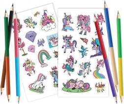 Omaľovánka na cesty Jednorožci ponúka zábavu a kreativitu počas cestovania vďaka 96 stranám aktivít, 2 listom samolepiek a 6 obojstranným pastelom. Ideálne pre malých umelcov na cestách!