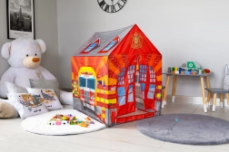 Detský stan Hasičská stanica poteší všetkých malých hrdinov. Realistické potlače hasičského vozidla a výbavy povzbudia deti k role-play aktivitám a samostatnej hre. Ľahká, no stabilná konštrukcia a odolný poťah z polyesteru zabezpečujú jednoduché prenášanie aj bezpečné použitie doma i vonku.