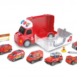 Táto fantastická sada obsahuje veľké hasičské auto dlhé 34 cm a šesť malých aut o veľkosti 7-8 cm, čo je ideálne pre rozvíjanie detskej predstavivosti a kreatívnej hry. Hasičské auto je vybavené voľnými kolesami, čo umožňuje hladký pohyb po akomkoľvek povrchu.
