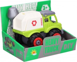 Užite si zábavu s týmto skrutkovacím autom o dĺžke 13 cm, ktoré je dodávané so skrutkovačom pre jednoduchú montáž. Voľné kolieska a dve varianty, nákladné alebo smetiarske, poskytnú vášmu dieťaťu hodiny hrania.