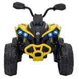 Detská elektrická štvorkolka Maverick ATV v žiarivo žltej farbe prináša realistický off-road zážitok pre malých jazdcov. Dva výkonné motory 200 W a 24V/5Ah batéria zabezpečujú plynulý rozjazd a dosť sily aj na nerovnom povrchu. Veľké ložiskové EVA kolesá s hlbokým dezénom a kompletné LED svetlá vpredu aj vzadu dodávajú štýl aj bezpečnosť.