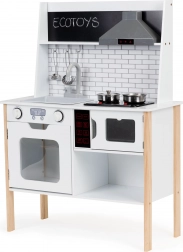 Vďaka pevnej a stabilnej konštrukcii je kuchynka bezpečná a odolná aj pri každodennej hre. Pohyblivá vodovodná batéria a otáčacie gombíky s klikaním dodávajú hre realistický rozmer, ktorý deti milujú. Herná kuchyňa podnecuje kreativitu, sociálne zručnosti a učí deti udržiavať poriadok.
