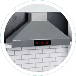 Hornú časť kuchynky zdobí digestor a praktické háčiky, vďaka ktorým budú doplnky vždy po ruke a kuchyňa zostane prehľadná.