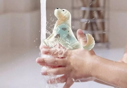Odolná plastová hračka psa je ideálna pre hru vo vode, ako napríklad vo vani.