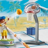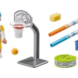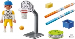 Basketbalista ochotne precvičuje svoje zručnosti pod košom vďaka špeciálnemu mechanizmu, ktorý umožňuje hádzanie lopty pod rôznymi uhlami – podľa polohy ruky figúrky a pôsobenia pružiny. Priehľadný krúžok na koši zvyšuje presnosť streľby. Špeciálne povrchovo upravené nálepky umožňujú tvoriť farebné návrhy pomocou priložených fixiek. Drobné vylepšenia je možné ľahko urobiť priloženou hubkou. So zábavným PLAYMOBIL setom môžu deti dosiahnuť majstrovstvo v basketbale!