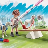 Sada Playmobil Color Tréning so psami prináša farebnú zábavu pre milovníkov zvierat. Tréner psov trénuje s dvoma roztomilými štvornohými kamarátmi v psom parku.