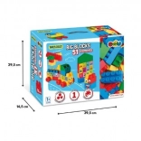 Táto stavebnica pomáha deťom rozvíjať jemnú motoriku, koordináciu očí a rúk, a tiež ich učí rozoznávať farby a tvary. Veľkosť kociek je prispôsobená pre malé ruky detí a podporuje ich bezpečnú hru.