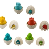 Každé vajce má jedinečný geometrický tvar a pestro farebný dizajn, ktorý podporuje vizuálny a kognitívny rozvoj.