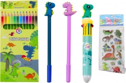 Sada navyše obsahuje dve perá zdobené dinosauřími motívmi, ktoré sa iste stanú obľúbenými pre každého malého fanúšika týchto fascinujúcich tvorov. Súčasťou peračníka je tiež strúhadlo, vrchnáčik na pero v tvare dinosaura a farebné nálepky s dinosauřími motívmi, ktorými možno ozdobiť zošity, knihy alebo samotný peračník, čím sa stane ešte jedinečnejším.