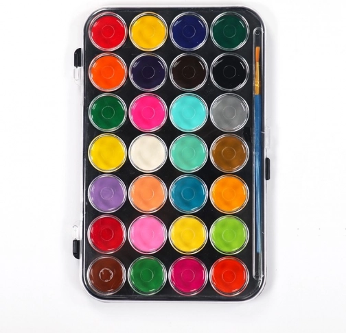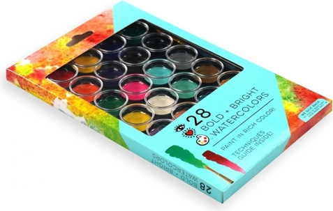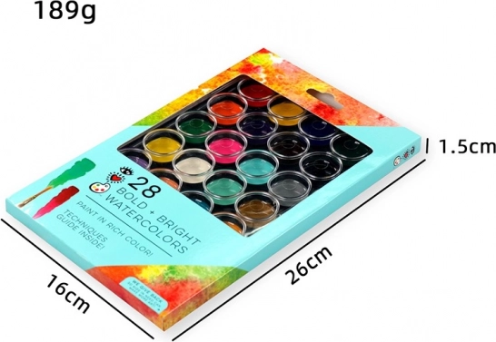 Objavte nekonečné možnosti hry s farbami a vytvorte si vlastné originálne obrazy. Táto praktická, kompaktná sada 28 akvarelových farieb v krásnych, žiarivých odtieňoch umožní každému vyjadriť svoju kreativitu. Sada je uzavretá v plastovom puzdre, ktoré chráni farby pred vysychaním a uľahčuje ich každodenné používanie. Súčasťou sady je štetec a stručný sprievodca akvarelovými technikami. Vďaka nemu sa každý naučí kombinovať farby a vytvárať nové odtiene. Je to ideálny darček pre deti, priateľov a všetkých, ktorí radi maľujú.