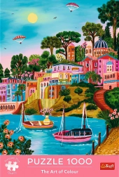 Puzzle TREFL Premium Plus z rady The Art of Colour (Umenie farieb) prinášajú jedinečný vizuálny zážitok s motívom malebného ostrova Syros v Grécku. Vysokokvalitný kartón a presná technológia výrezov zabezpečia, že dieliky do seba zapadnú iba tam, kam patria, a vďaka zvýšenej hrúbke môžete zložené časti ľahko presúvať bez rizika rozsypania.