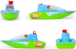 Odolná plastová konštrukcia, plávajúci trup a živé farby robia z lode ideálnu hračku do vody aj na suchú zem.