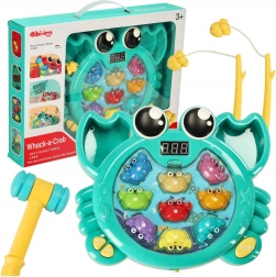 Na výber sú dve hry: búchanie krabov kladivkom a lovenie pomocou prúta. Obe aktivity podporujú rozvoj manuálnych zručností, jemnej motoriky a koordinácie ruka-oko, čo je kľúčové v raných rokoch života dieťaťa. Vďaka tomu deti zlepšujú svoje pohybové schopnosti a presnosť.